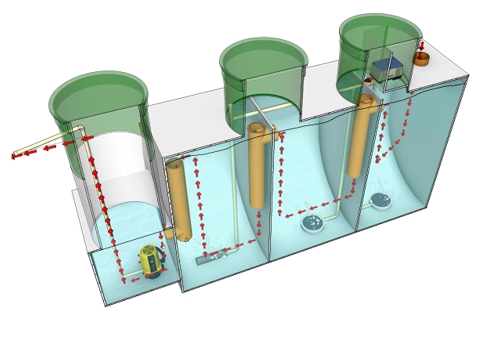 Подходит для участков с высоким уровнем грунтовых вод, обеспечивая надёжную и эффективную очистку сточных вод в сложных гидрогеологических условиях.