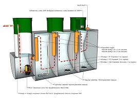 Система очистки стоков работает следующим образом: сначала происходит механическая фильтрация, затем — многократная биологическая обработка. Для этого используется ёмкость, разделённая на три секции и оборудованная биологическим фильтром. Канализационные воды, проходя многократно через биофильтр, очищаются до 98%. После достижения необходимого качества очистки они выводятся из системы в грунт или дренажный колодец. Монтаж септиков в условиях высокого уровня грунтовых вод (УГВ) сопряжён с рядом технических сложностей, обусловленных спецификой гидрогеологических условий. Среди них — быстрое размывание стенок котлована плывунами, обвалы грунта, а также проблемы с отводом очищенных сточных вод в условиях перенасыщенной влагой почвы и отсутствия ливневых канализаций. Инженеры компании «Инженер септик», разработавшие систему «Каскад-Горизонт Премиум», учли эти особенности и создали аэрационную установку, адаптированную для работы в условиях высокого УГВ.